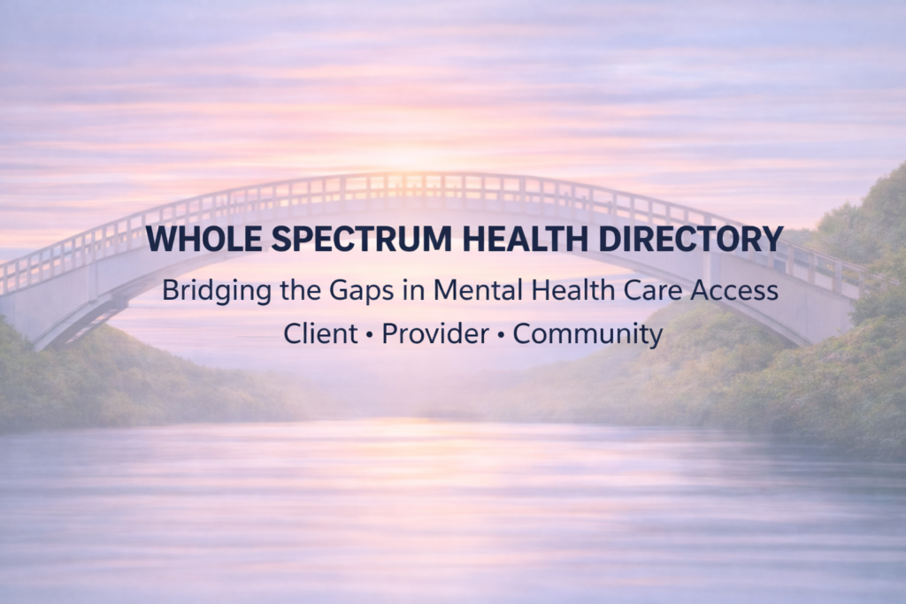 Whole Spectrum Health was developed by a licensed mental health professional who understands the challenges both clients and providers face when navigating the mental health landscape. This platform was created to bridge gaps in accessibility, transparency, and collaboration — with the goal of strengthening connections within the field.